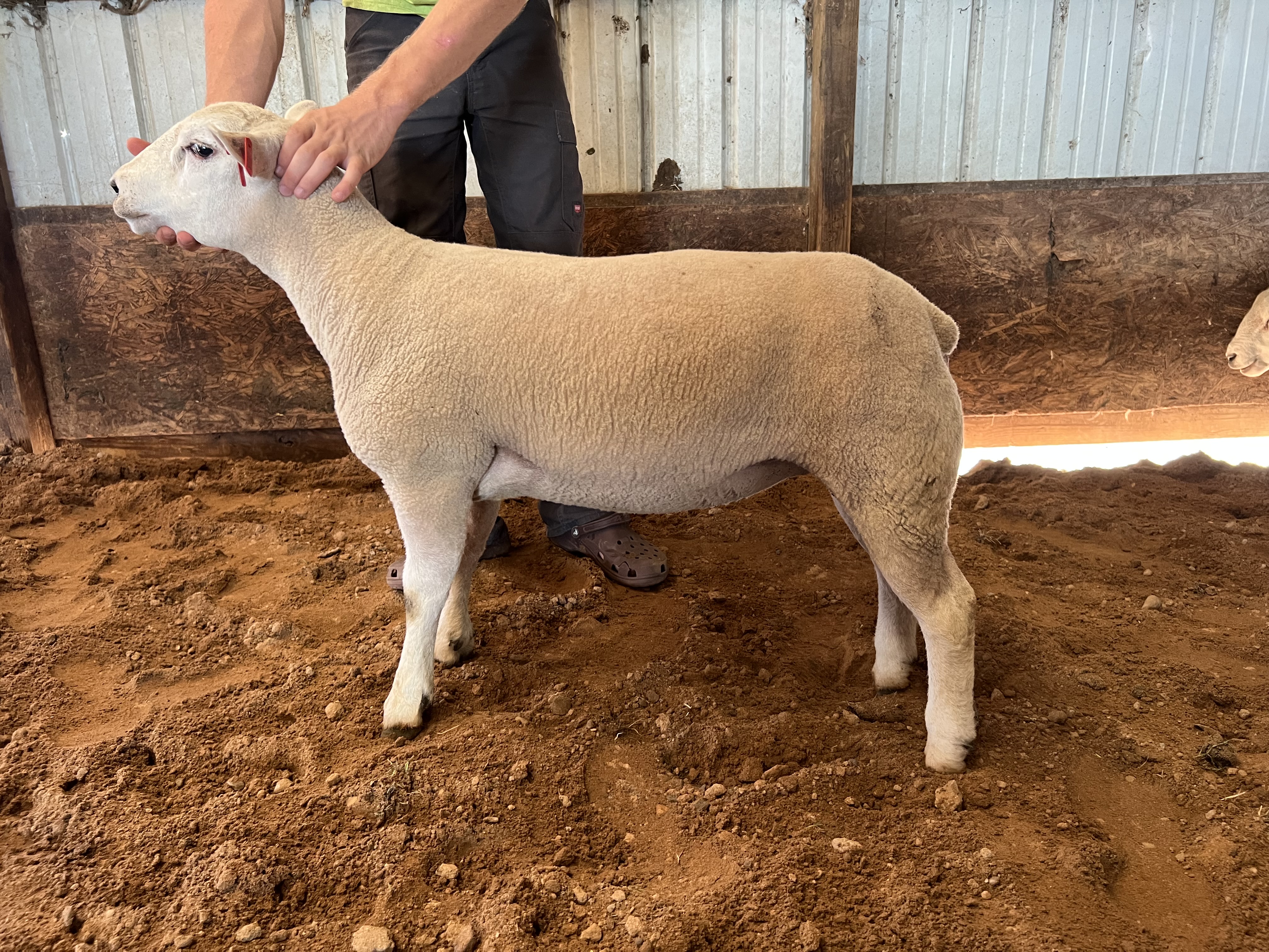Currently I have 11 Ewe lambs available, two yearlings and one 2-year-old. All Lambs born from March 2 to April 23, 2025. All Sired by NSIP Portland Prairie rams “George Washington” and “Thomas Jefferson” both RR rams, so lambs will be QR at least, if not RR. I have never had CL, foot rot, or OPP. The flock is raised strictly on grass in the 30-acre solar site pasture on our farm where they rotationally graze. These lambs have thrived on pastured all summer long, they haven’t had any grain in months…more profit for all of us. I had 170 Texels at our high point this year. Please contact me for NSIP numbers, Scan data, and more photos. Check out our website www.halbursheavenlyhill.com and Facebook page “Halbur’s Heavenly Hill” https://www.facebook.com/profile.php?id=61556978938130 I have been raising Texels starting with Crossbred Texels since 1993. I have been breeding for the biggest loin eyes and focusing on large rear leg muscles (where the best meat cuts are). I pay close attention to lambing ease, good mothers, and amazing growth on only GRASS! I collect A LOT of data. My entire 2025 lamb crop’s average adjusted loin eye area was 3.29 (94 lambs). The average adjusted loin eye area at the National Texel Show & Sale in 2025 was 3.01. This isn’t an apples-to-apples comparison because my Texels were raised on grass, no grain all grazing season! And these aren’t just my best; this is the whole lamb crop! To compare my WHOLE 2025 lamb crop to British Texels: -Please note this is not an apples-to-apples comparison because my lambs were about 8.5 pounds heavier than the British Texel weight at scanning and about 6 weeks older but it gives some perspective. -My Muscle Depth/Loin Depth is 32.2 mm where the 10 year British average depth is 28.2 mm, mine are 4mm bigger. -My lambs fat depth was less than the British 2.6 mm versus my 2.1 mm which probably is due to my flock being grass based, so they are lean….lean growing machines on grass.